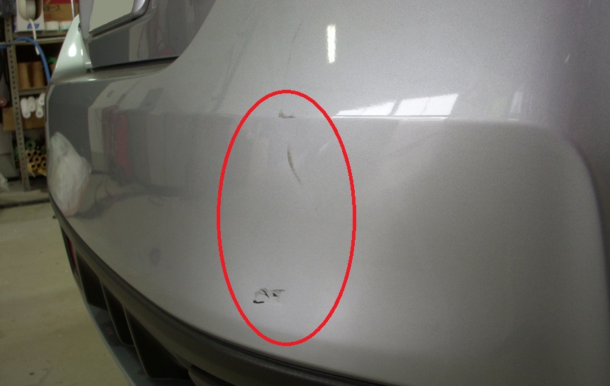 今回の修理ではフロント・リアどちらのバンパーもヘコミ傷ではなく表面の塗装が剥がれた程度の傷でした。そのため板金修理は必要なく、塗装のみで修理することができています。