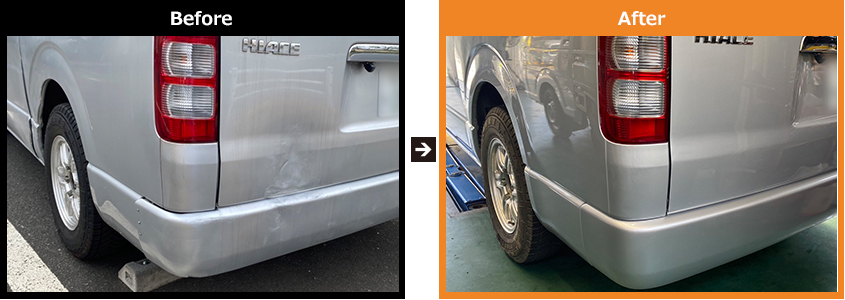 板金塗装ならニコニコ板金 > キズの具合 > トヨタ ハイエースのスライドドア交換・リアバンパー交換・バックドア板金・クオーターパネル板金