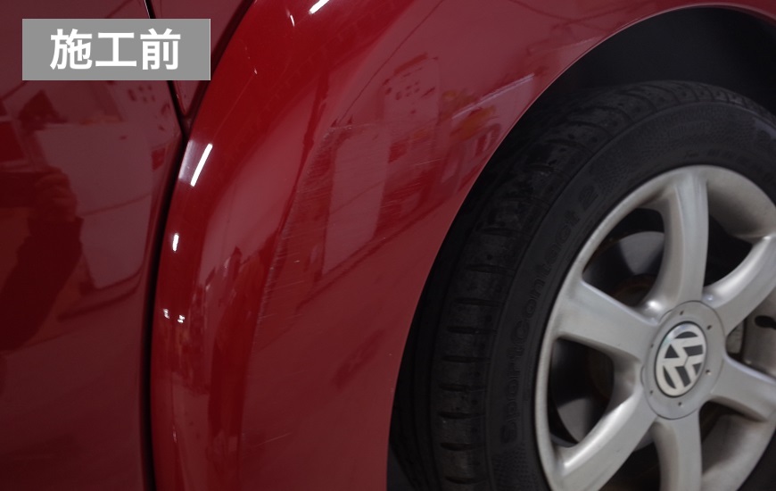右側フロントフェンダーに付いた擦り傷の修理で、1泊2日での修理となりました。