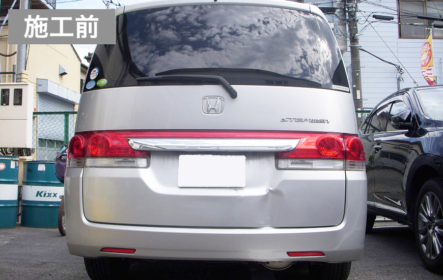 ステップワゴンのリアゲートにできたヘコミ傷を修理しにいらっしゃったお客様、直接ニコニコ板金の店舗までお越しいただきました。