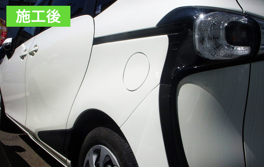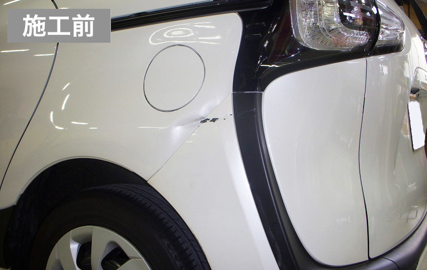 神奈川県川崎市にお住まいのF様、シエンタの左側給油口周辺とリアバンパーにヘコミ傷ができてしまい、ホームページよりニコニコ板金へとお問い合わせをいただきました。