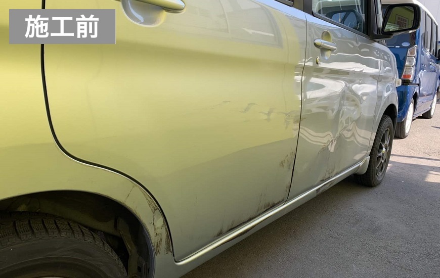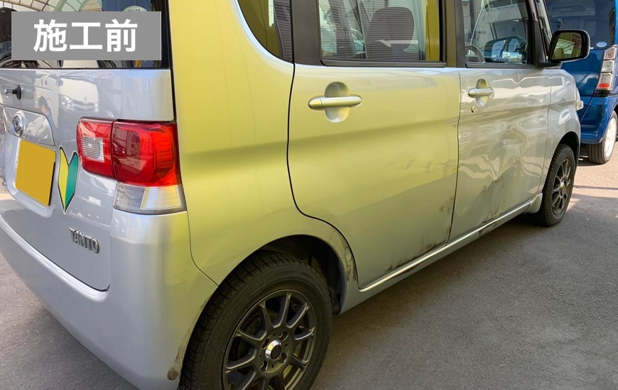 神奈川県にお住まいのR様、ダイハツタントの右側面に傷・ヘコミができてしまい、修理のためにニコニコ板金にお問い合わせをいただきました。
